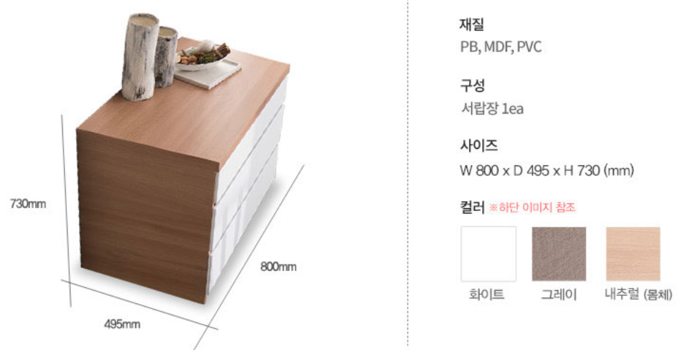 에넥스몰 | [EB] 클라인 3단 와이드 서랍장 (enex.co.kr)